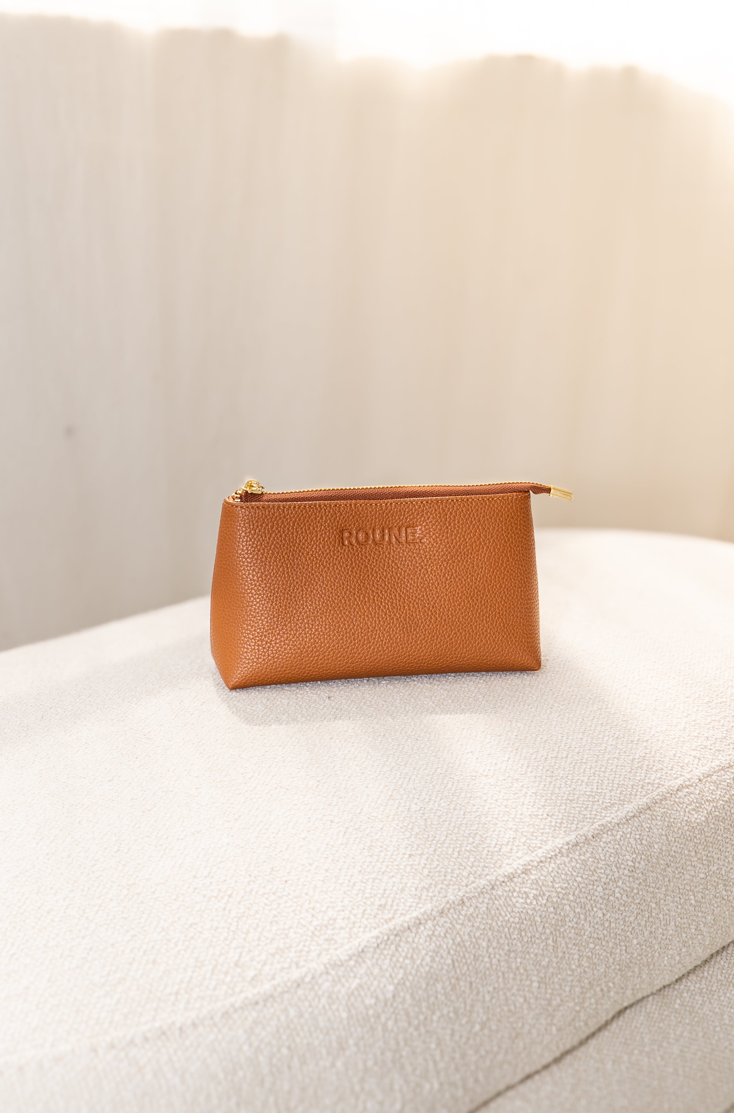 Die ROUNE LUUN besteht aus veganem Premium-PU-Leder mit einer soften, feinmatten Oberfläche. Das Material ist strapazierfähig, formstabil und leicht zu reinigen. Die dezenten Gold- und Metallakzente sind langlebig veredelt und behalten ihren warmen Glanz.